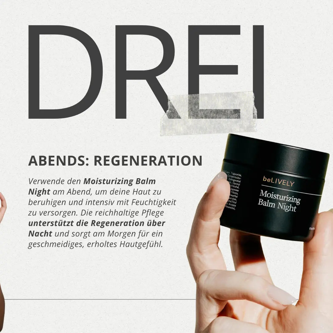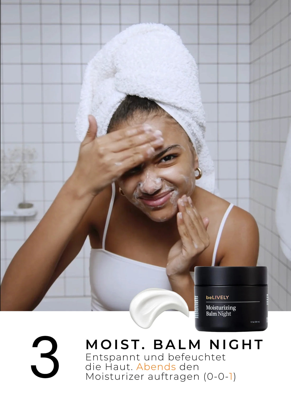 - Moisturizing Balm Night: Calma, rigenera e nutre la pelle durante la notte con un’idratazione intensa.